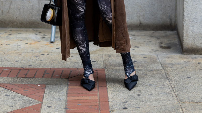 Kim Kardashian knows how to rock a bodysuit. We often see her in a basic, solid-colored tank top bodysuit, after all. Other times, she's rocked thick, almost wetsuit-like material, with her bodysuit hugging her figure. Like Kardashian, pair your athletic-looking bodysuit with leather track pants and a fun heel for a complete and chic look.