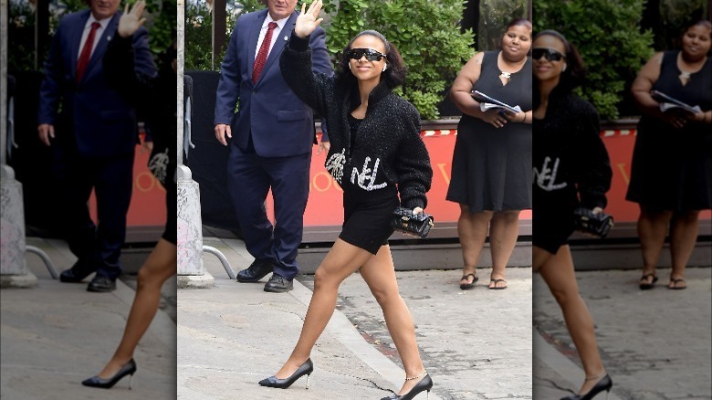 One of the hundreds of Y2K trends to come back into style is the micro-skirt. Although it's a killer asset to any outfit, a lot of people struggle to style these low-rise miniskirts. A bodysuit can be the missing puzzle piece to complete the look. Ciara perfected this combination, pairing a black micro-skirt with a matching bodysuit. The complex cut of the piece makes for an interesting texture, while the simple skirt provides basic coverage.
