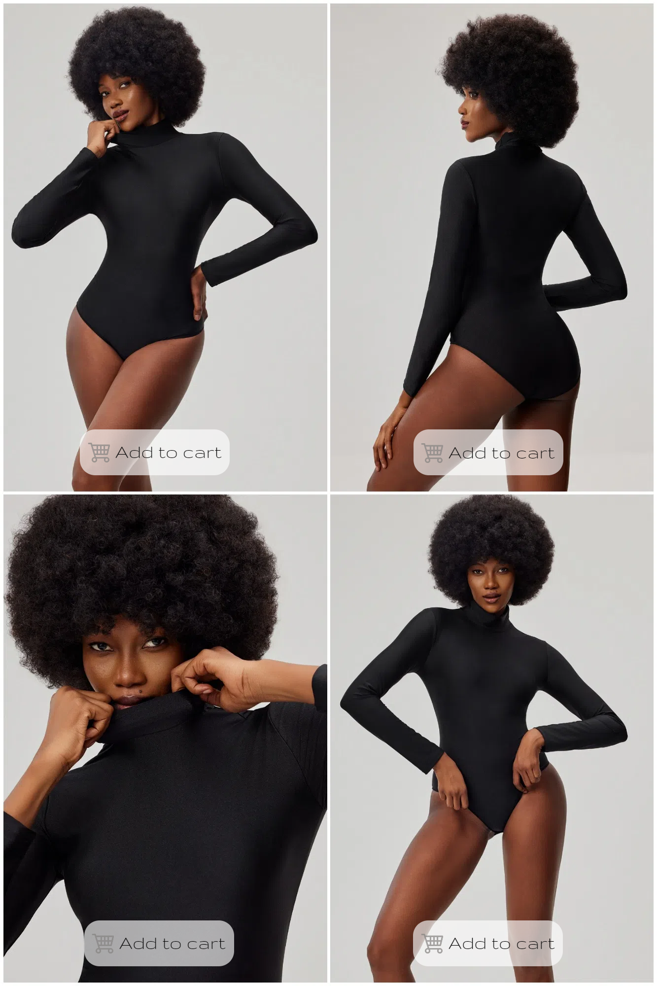 Editor’s tip: On a chilly day, slip into subtle mock-neck with a sweater or wool peacoat on top. Or try a compressive stretch-jersey for a sculpted fit.